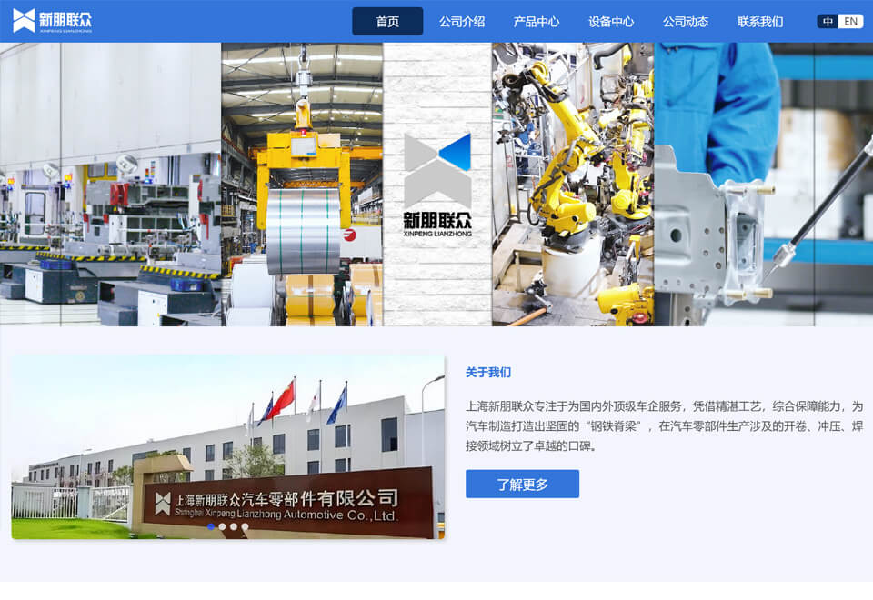 公司官网,展现公司形象和产品,为公司打下汽车零部件生产涉及的开卷、冲压、焊接领域树立了卓越的口碑